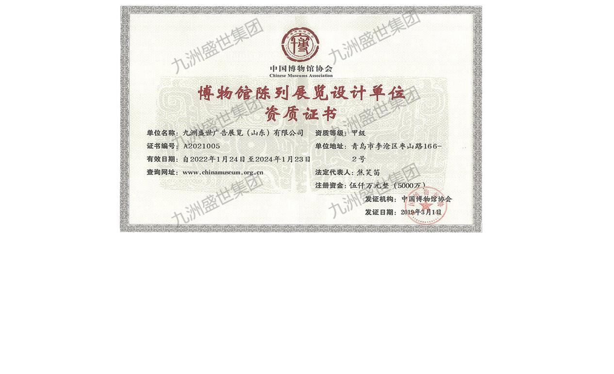 博物館陳列展覽設計單位甲級資質證書